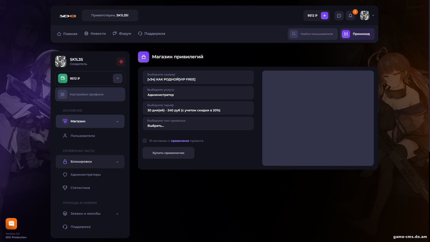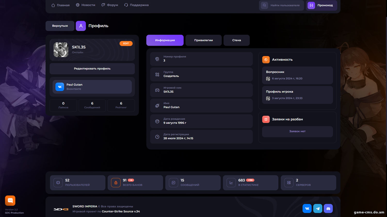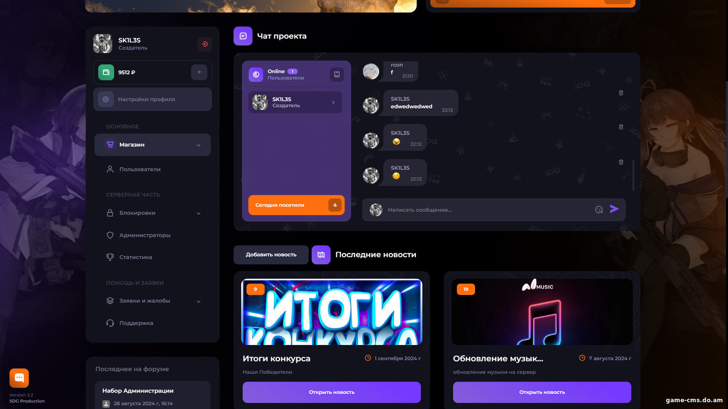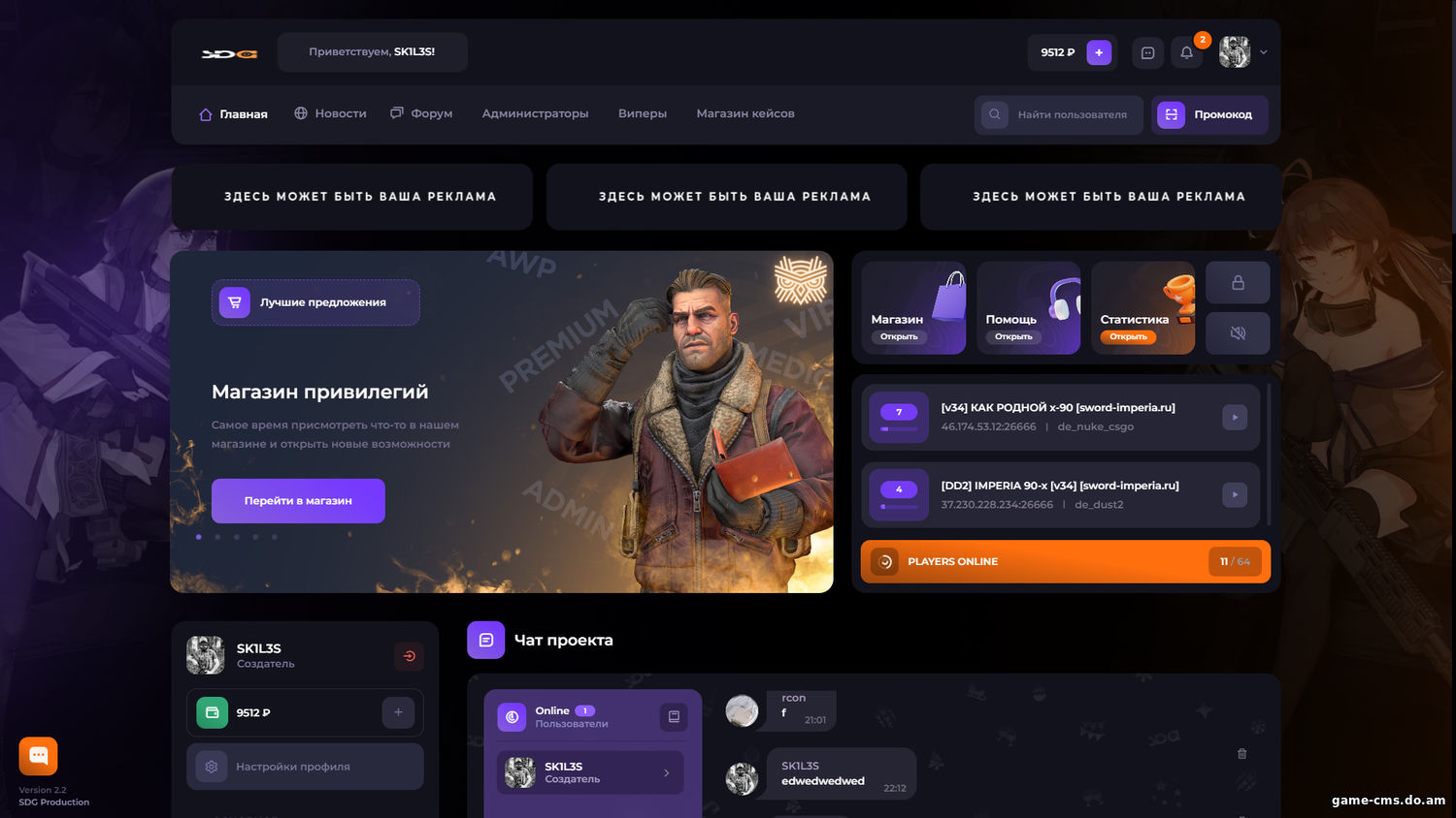 Шаблон «Standart Dark» для GameCMS