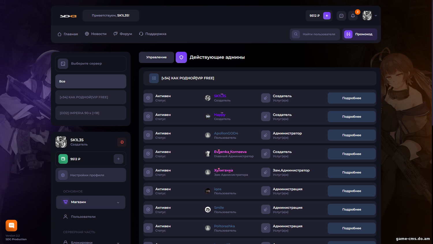 Модули для GameCMS
